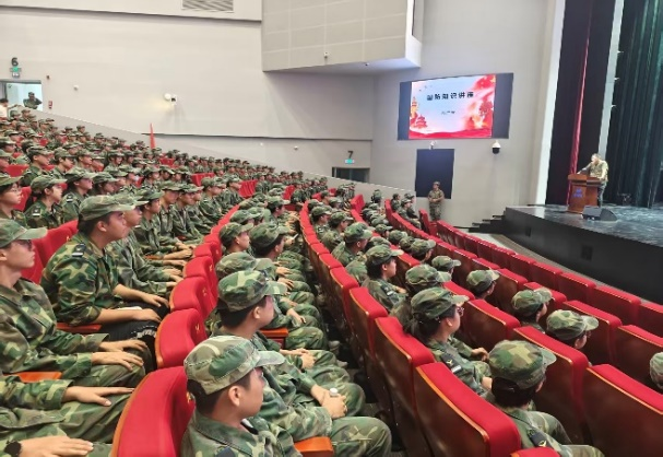 精神浸润环节,美育为国防教育注入深厚底蕴。国防专题讲座上,刘广智老师以详实案例与数据,让同学们在理性认知中感悟国家安全的崇高之美;电影《建党伟业》的观影现场,同学们沉浸于党的峥嵘岁月,在光影艺术中汲取爱国力量,让红色基因与美育熏陶深度交融。文艺汇演更是“以美润德”的集中呈现:活力舞蹈跳出青春节拍,深情歌唱传递家国情怀,钢琴独奏流淌艺术匠心,影视配音尽显创意巧思,班主任的倾情献唱与全体师生合唱的《歌唱祖国》,将集体荣誉感与艺术感染力推向高潮,让热血青春在舞台上绽放璀璨光芒。